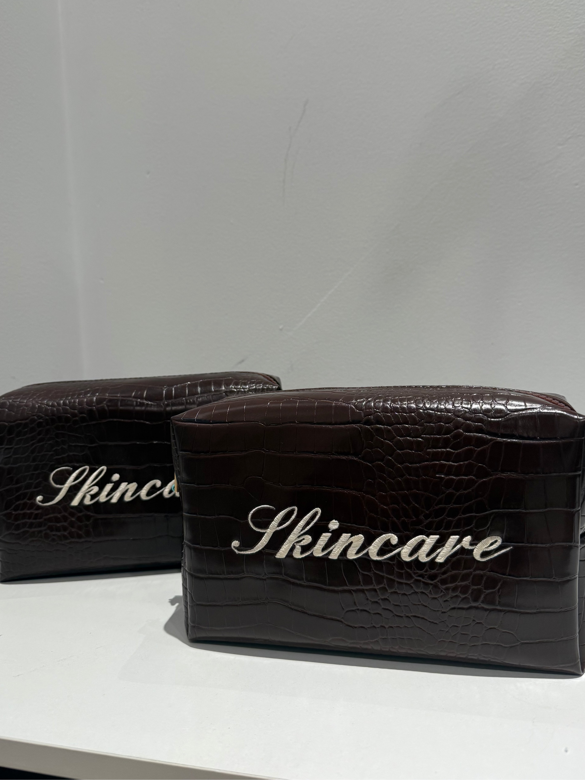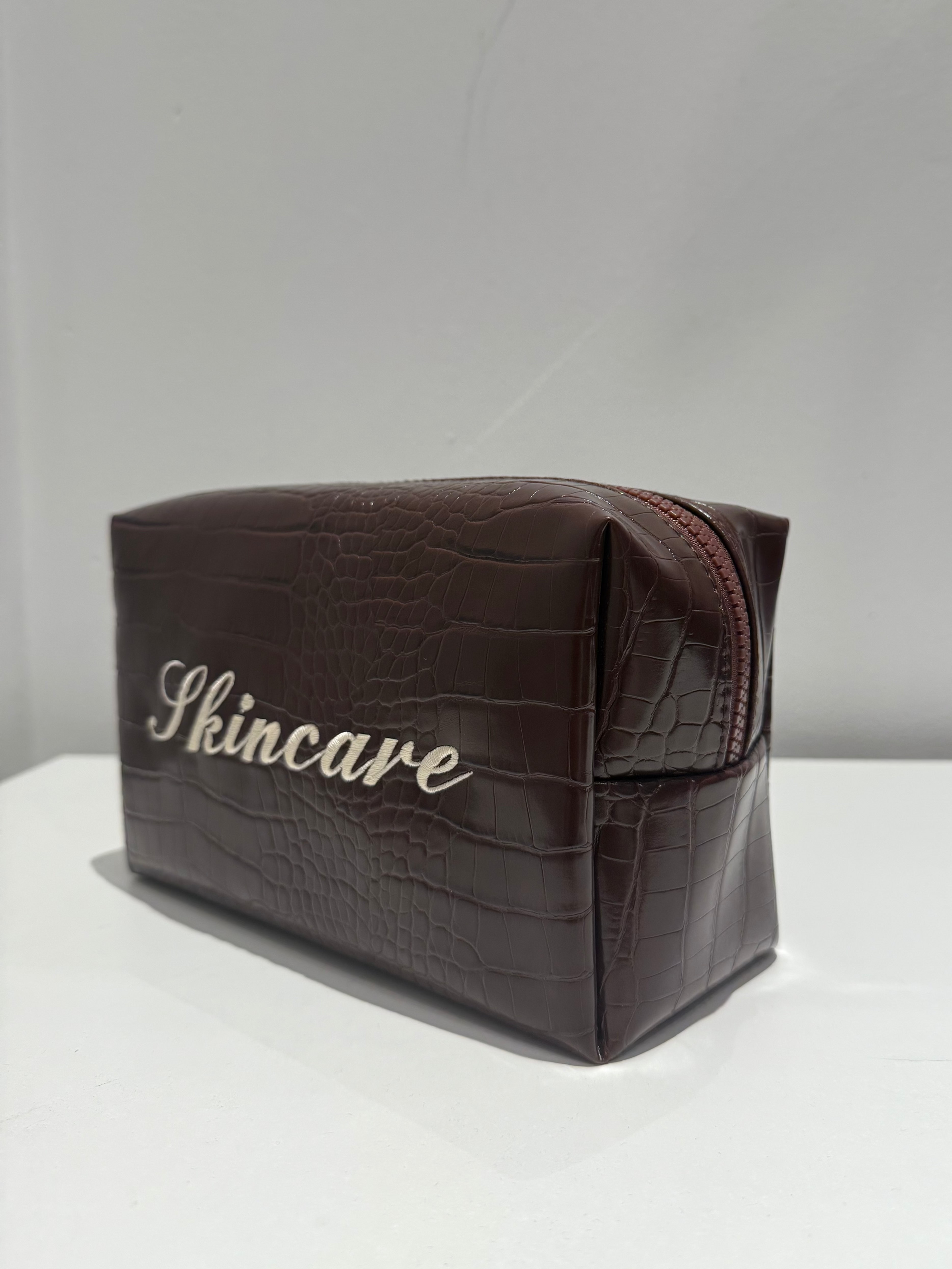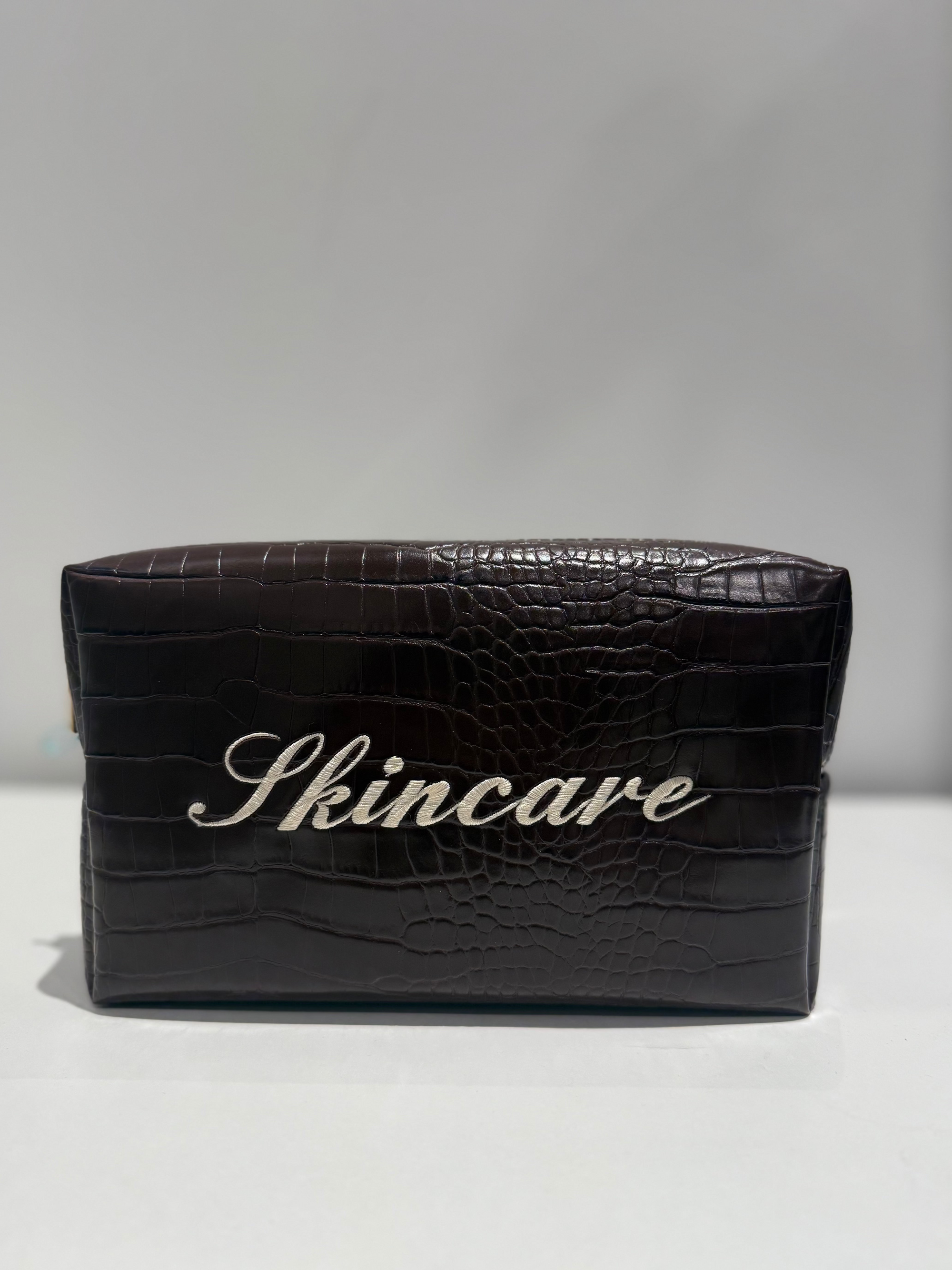 'Skincare' Embroidered Croc Pouch