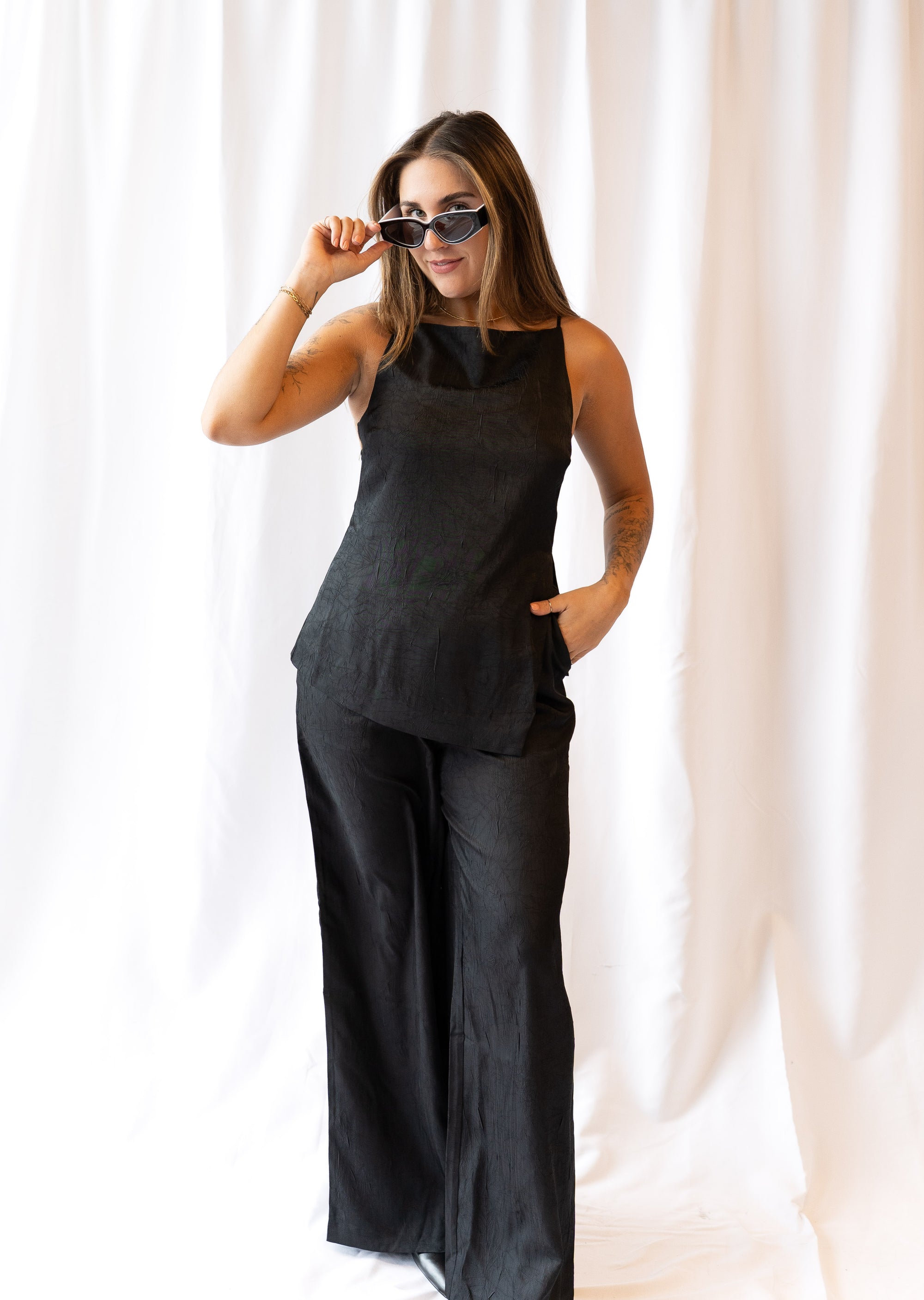 Julyana Stretch Satin Pants Set